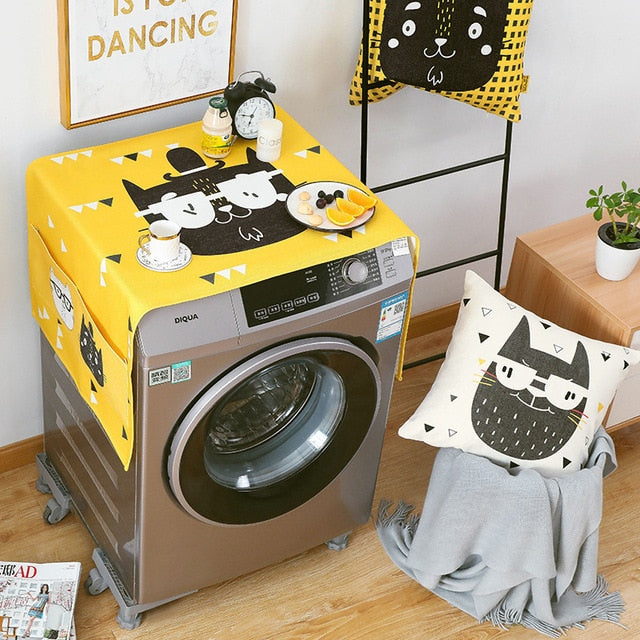 Geometric Fridge Dust Cover Washing Machine Cover Towel Winson Cat Thick Cotton Linen Home Refrigerator Cloth Kitchen Products
